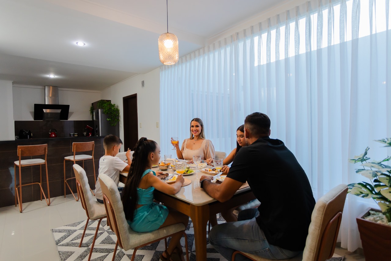Condominio Palma Blanca Departamento de 133m2 2 habitaciones junior 1 habitación en suite Cocina americana Living Comedor Área de servicio con dormitorio 1 Parqueo Equipamiento: Mueblería de cocina, dormitorio y Baños incluida Aires acondicionados en todos los ambientes, Termo tanque, Cocina, Horno, Extractora
